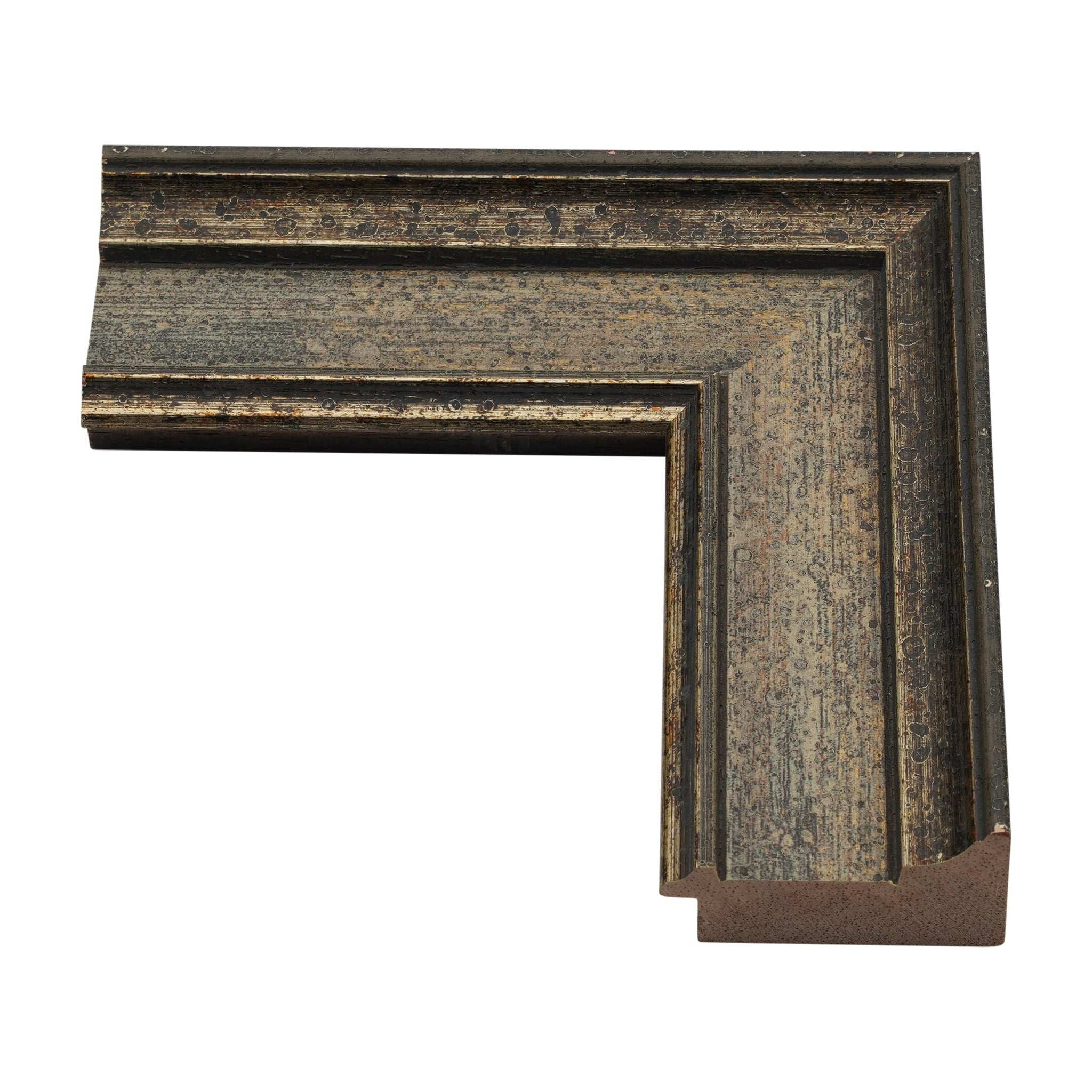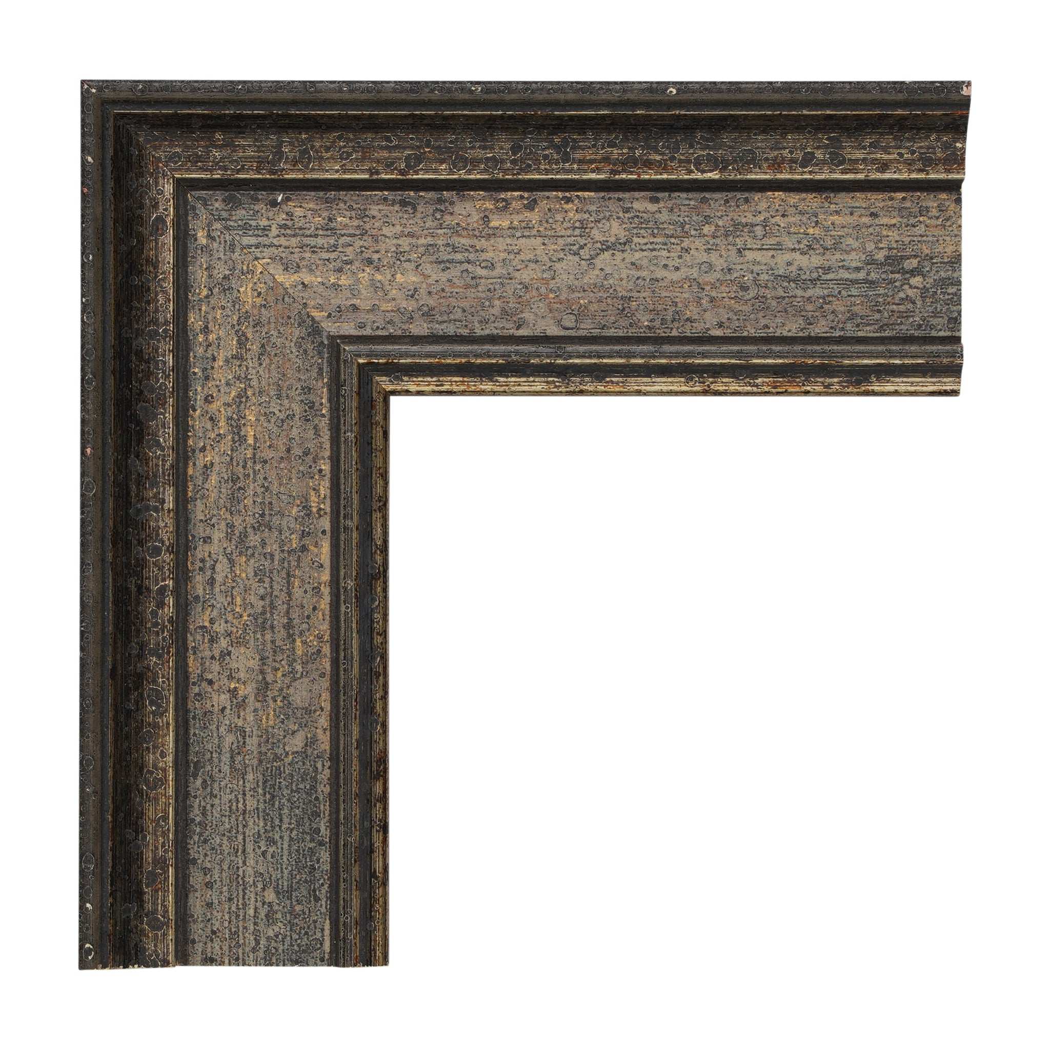 Complement an urban, grunge or industrial aesthetic with this here 2 1/8” wide custom dark gray frame that offers a 7/16” rabbet depth, a rustic texture and a smoky ashen finish.