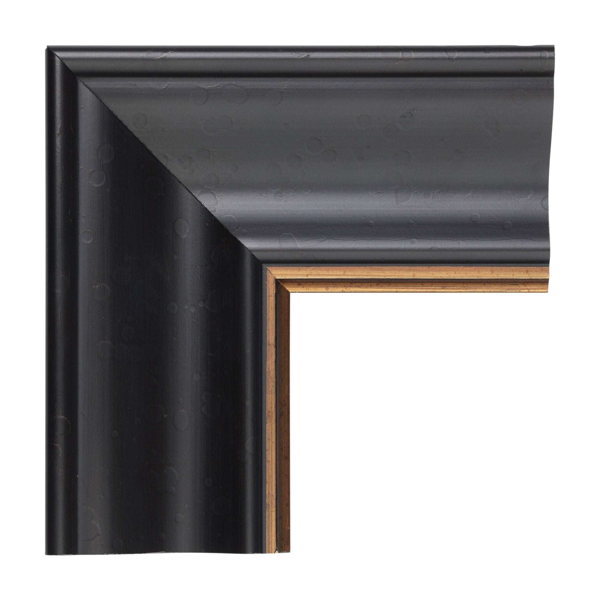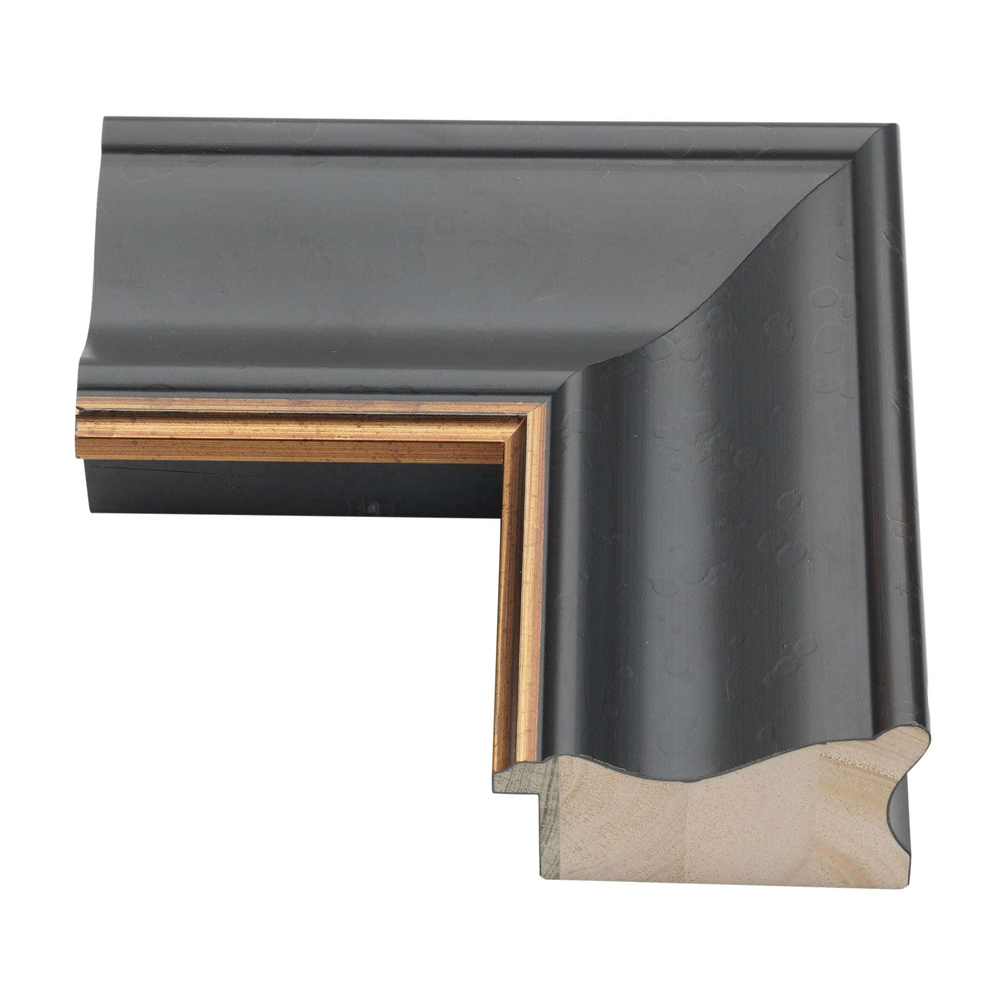 A thin gold lip, scooped out 3” face, 15/16” rabbet depth and antique black finish put together a custom black and gold frame that boasts timeless appeal and refinement.