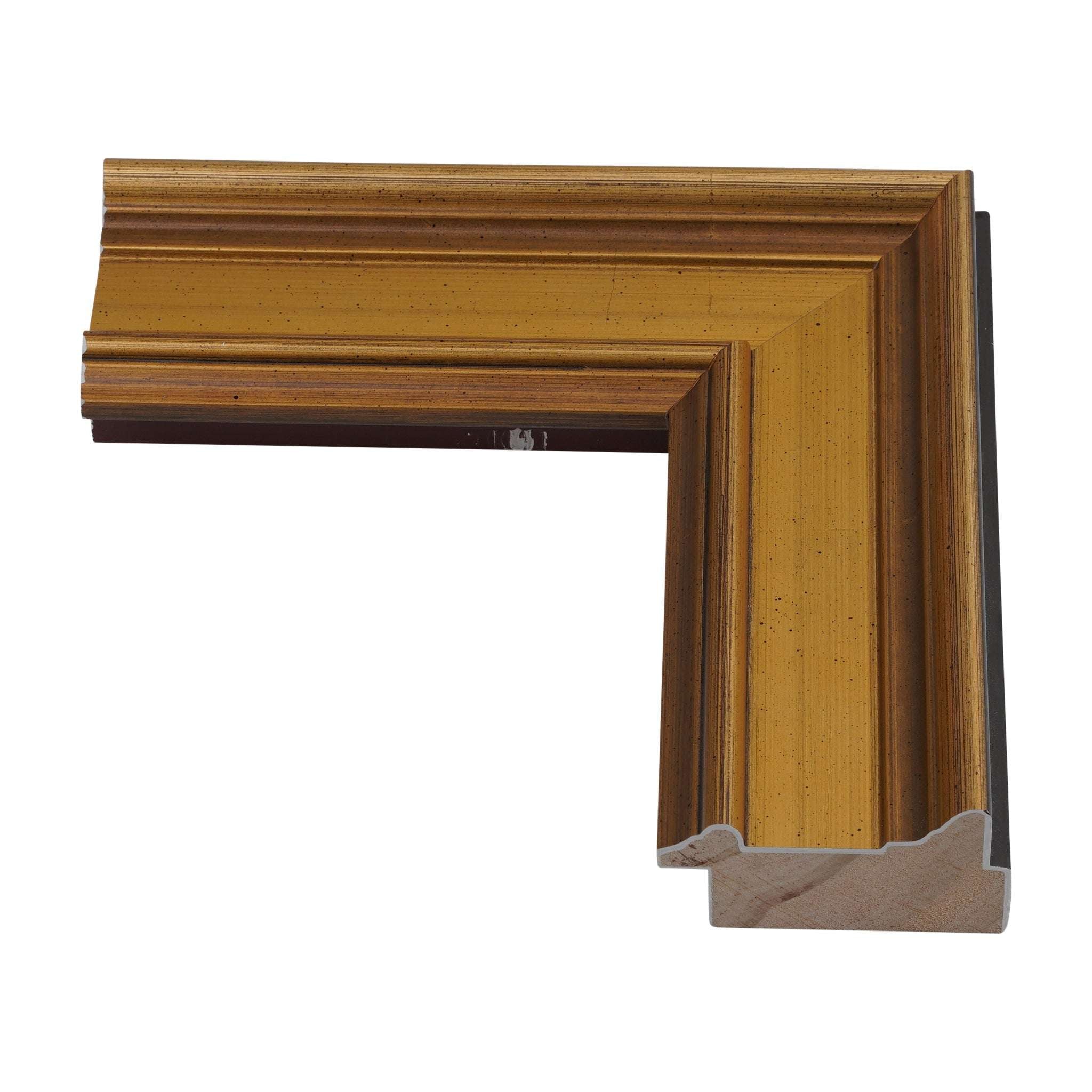 A gold plein air frame slated to put the spotlight on artwork or portraits, this 2 1/8” custom frame with a 1/2” rabbet depth hones a subtle gray wash and dark buttress.