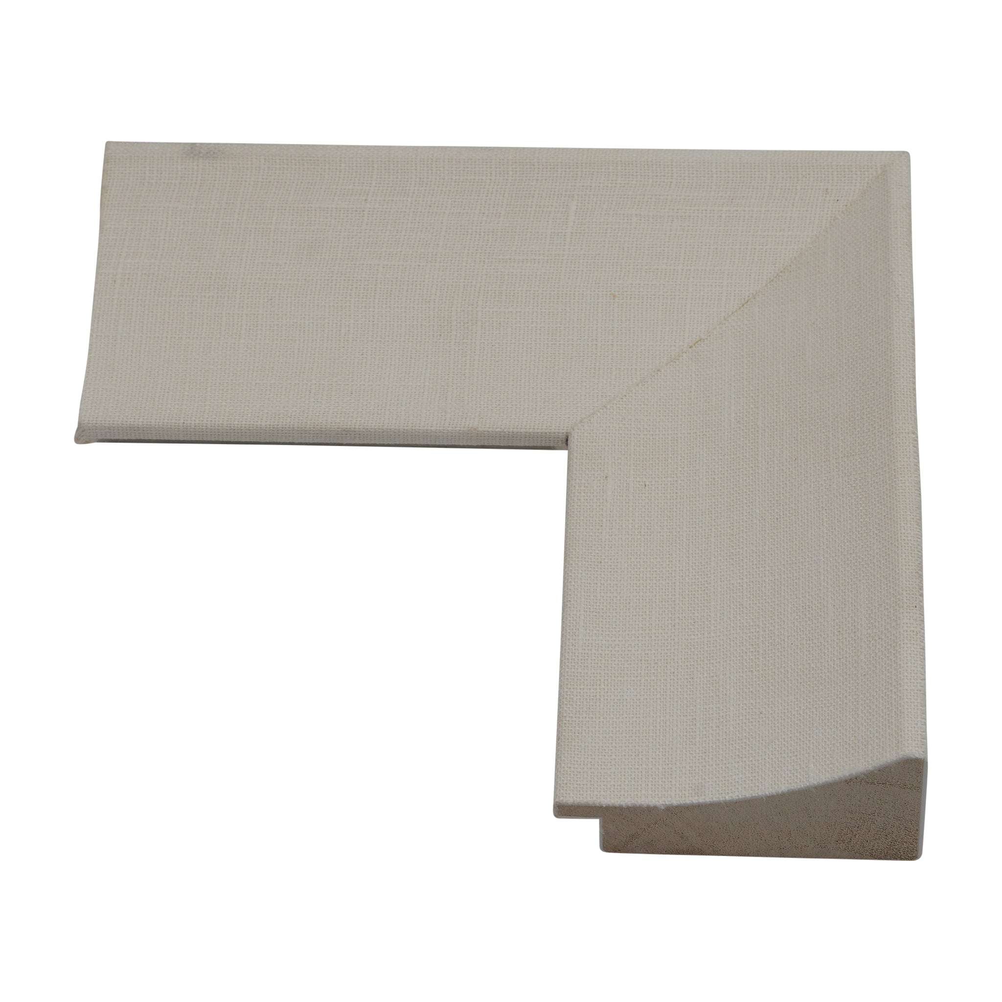 The neutral off-white tones of an oyster colored grosgrain flax liner supply this 2 1/2” custom frame featuring a 5/16” rabbet depth with shabby chic flair.