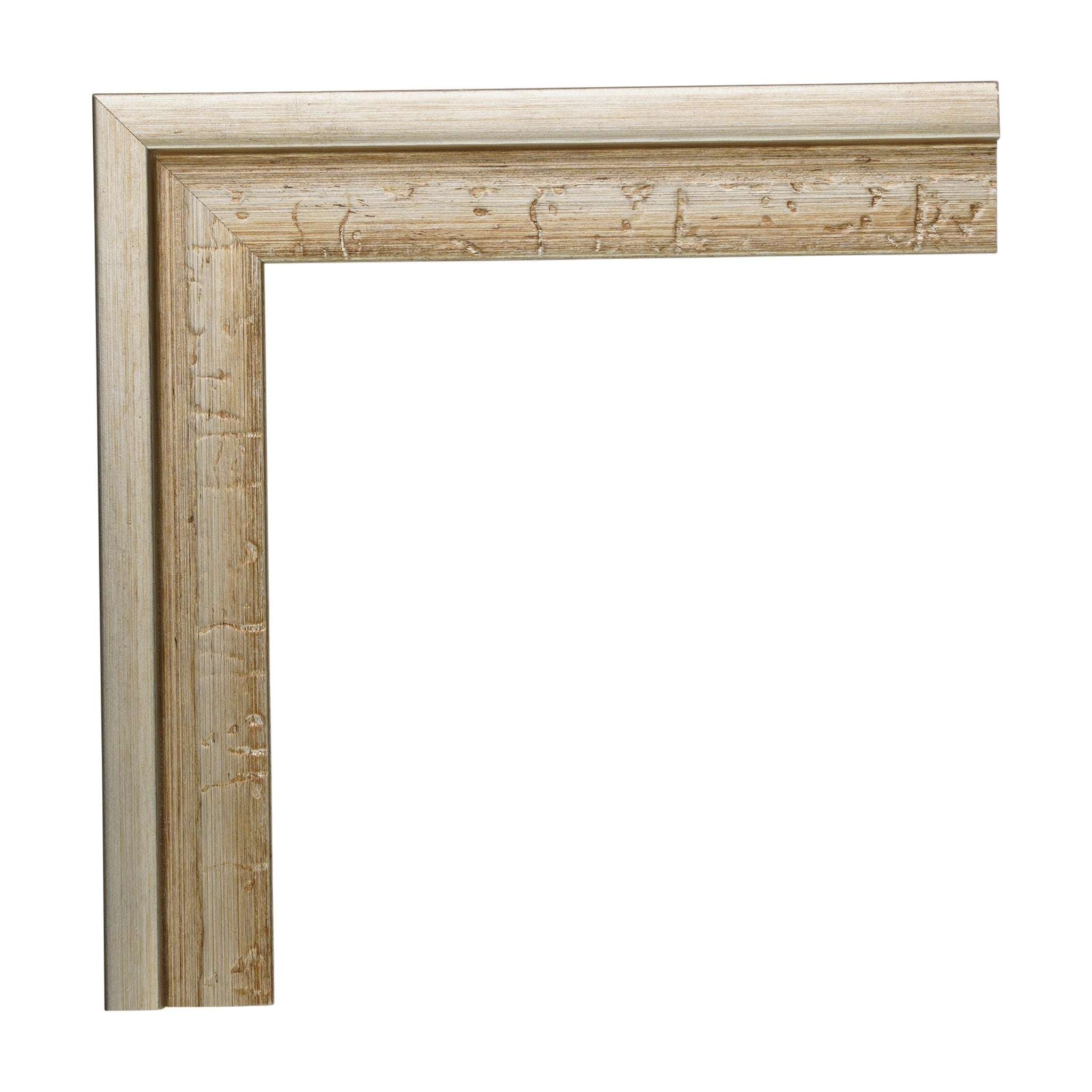 The archaic look of this 1 1/8” custom aged silver canvas frame with a 1 1/8” rabbet depth has been achieved through the implementation of distressed details and an antique champagne finish.