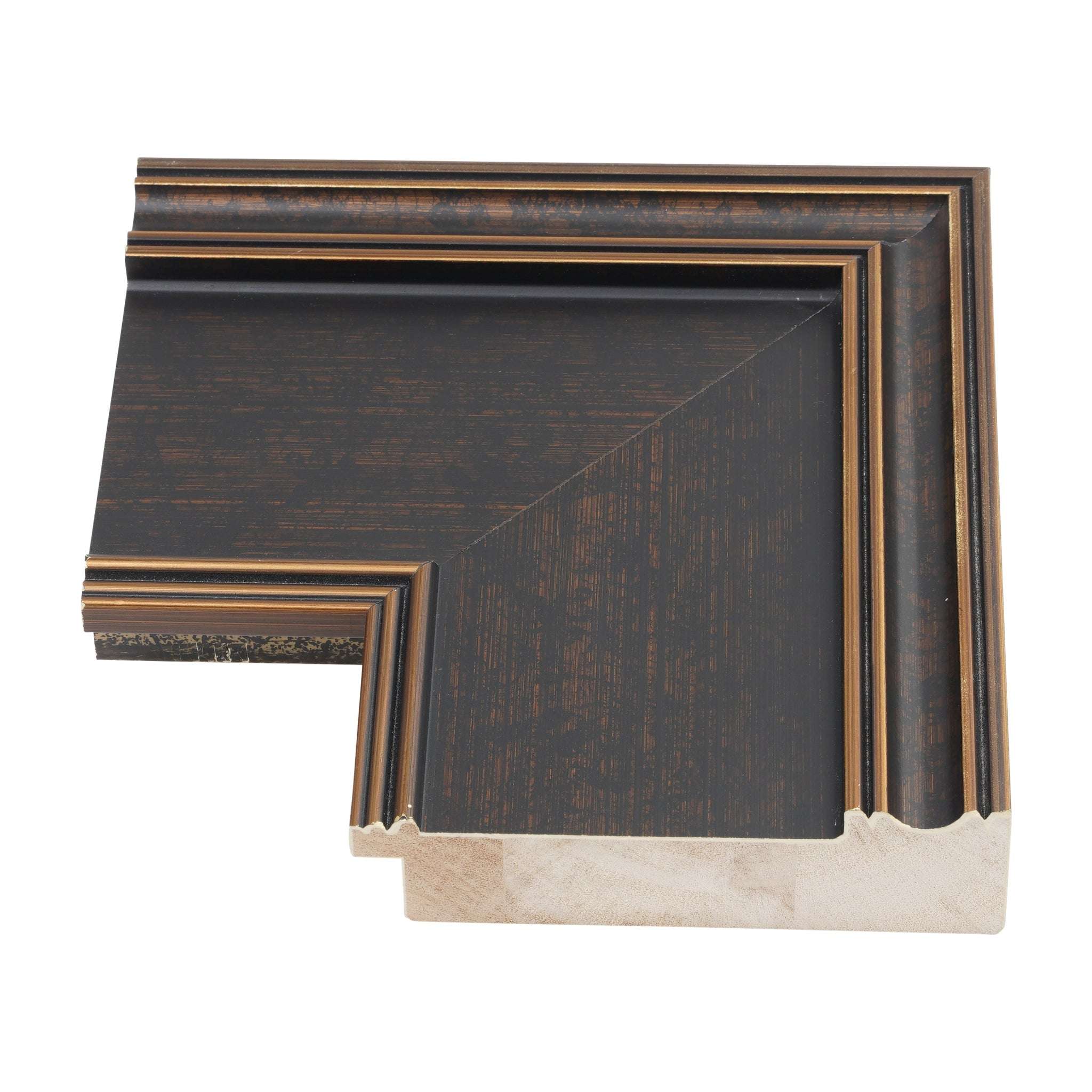 Diplomatic and masculine, this thickset 4 1/8” wide custom plein air frame deploys a 5/8” rabbet depth and dark brown face traced with antique bronze outlines.