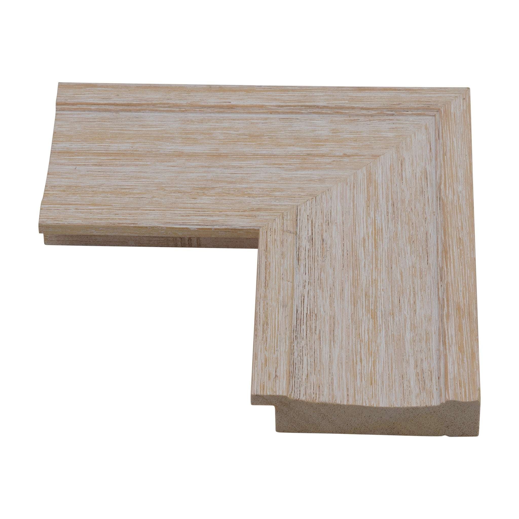 A slight scoop, 1/2” rabbet depth and whitewash finish that imparts a distressed timeworn effect merge to form this 3” custom barnwood frame moulding in a shabby chic shade of white cream.