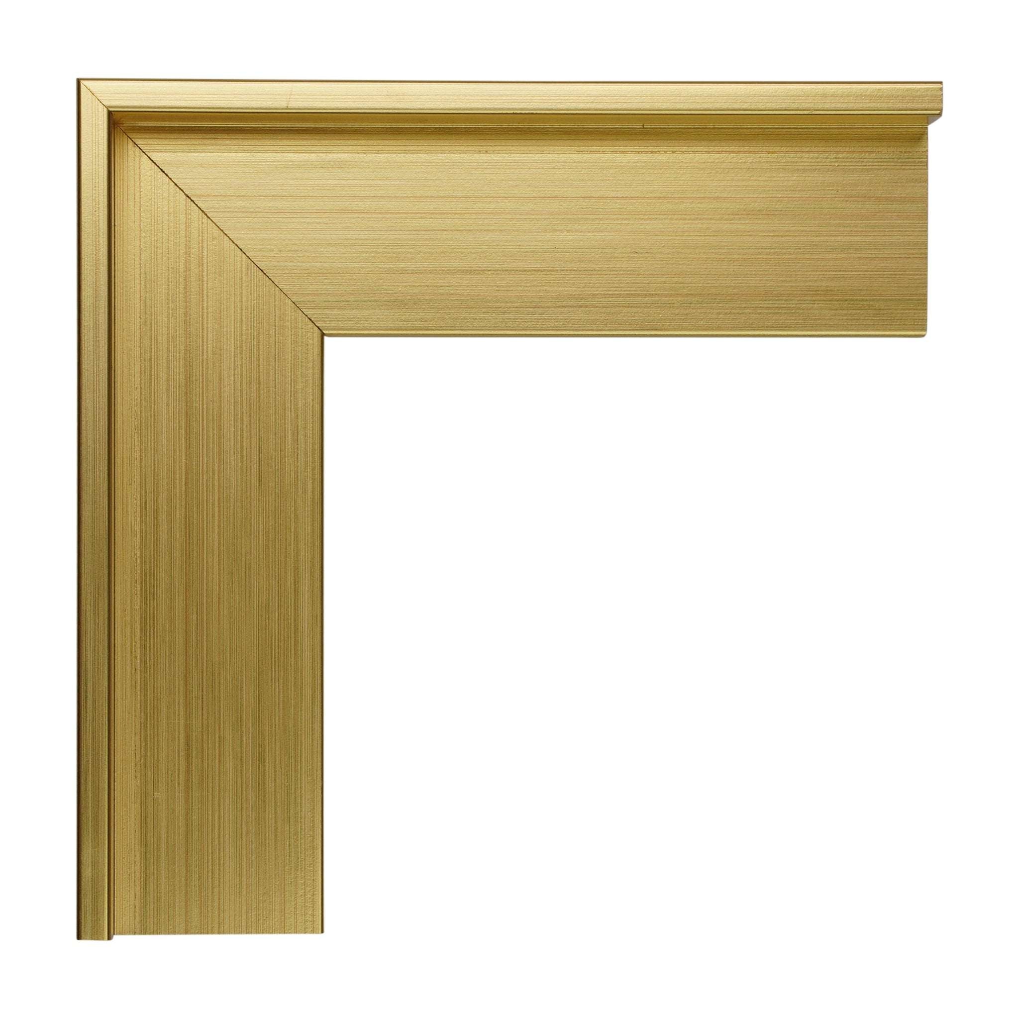 Float artwork with a golden lining by framing it in this minimal gold floater frame composed of a slim and slender 1/4” face receded by a 7/8” rabbet depth. This frame is also available is silver #1342.