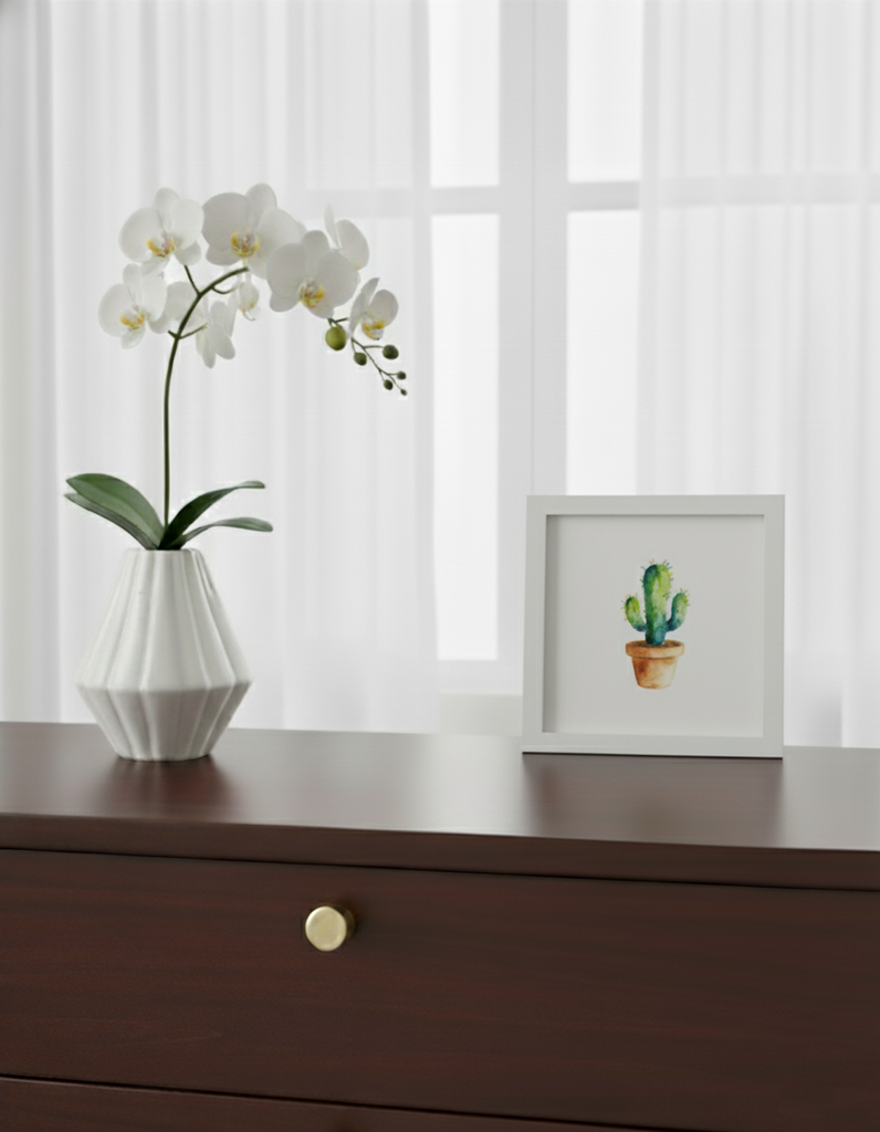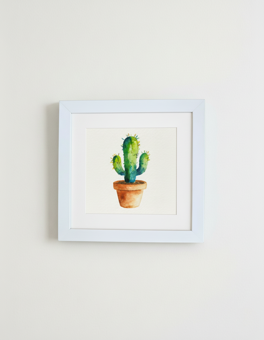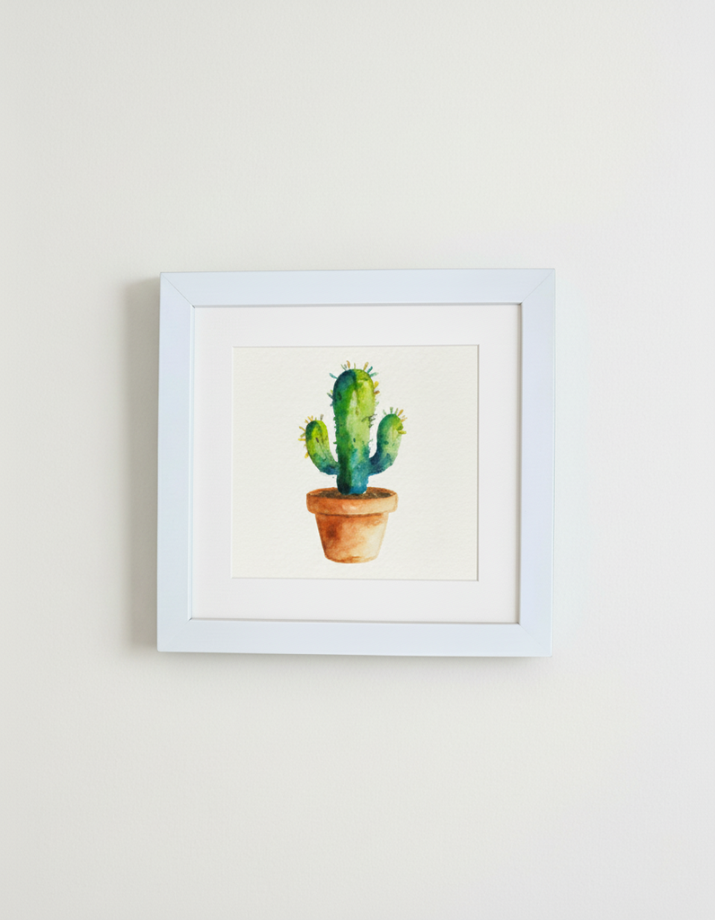 This white flat frame offers a minimalist profile that suits bright, modern spaces. It measures 13/16" tall × 13/16" wide with a 5/8" rabbet, ideal for unmounted art or photography.