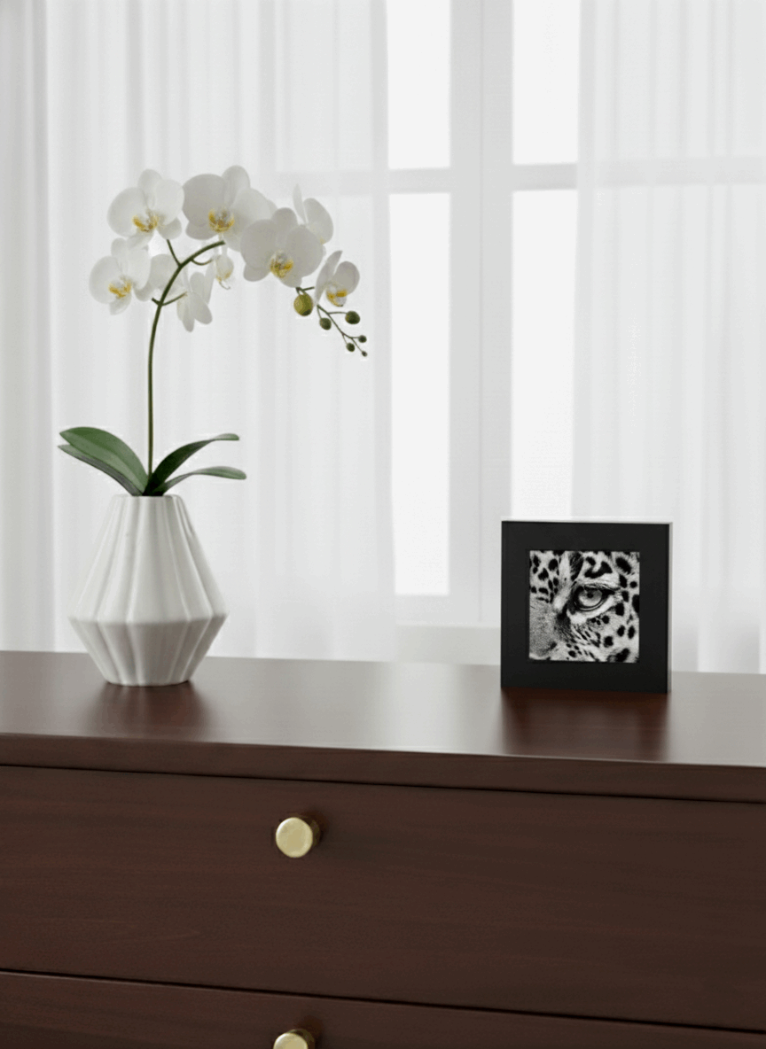 This bold black frame features a 13/16" height × 1-15/16" width, offering clean lines and commanding presence. With a 9/16" rabbet, it's a versatile moulding for float mounts, thick artwork, or display depth.