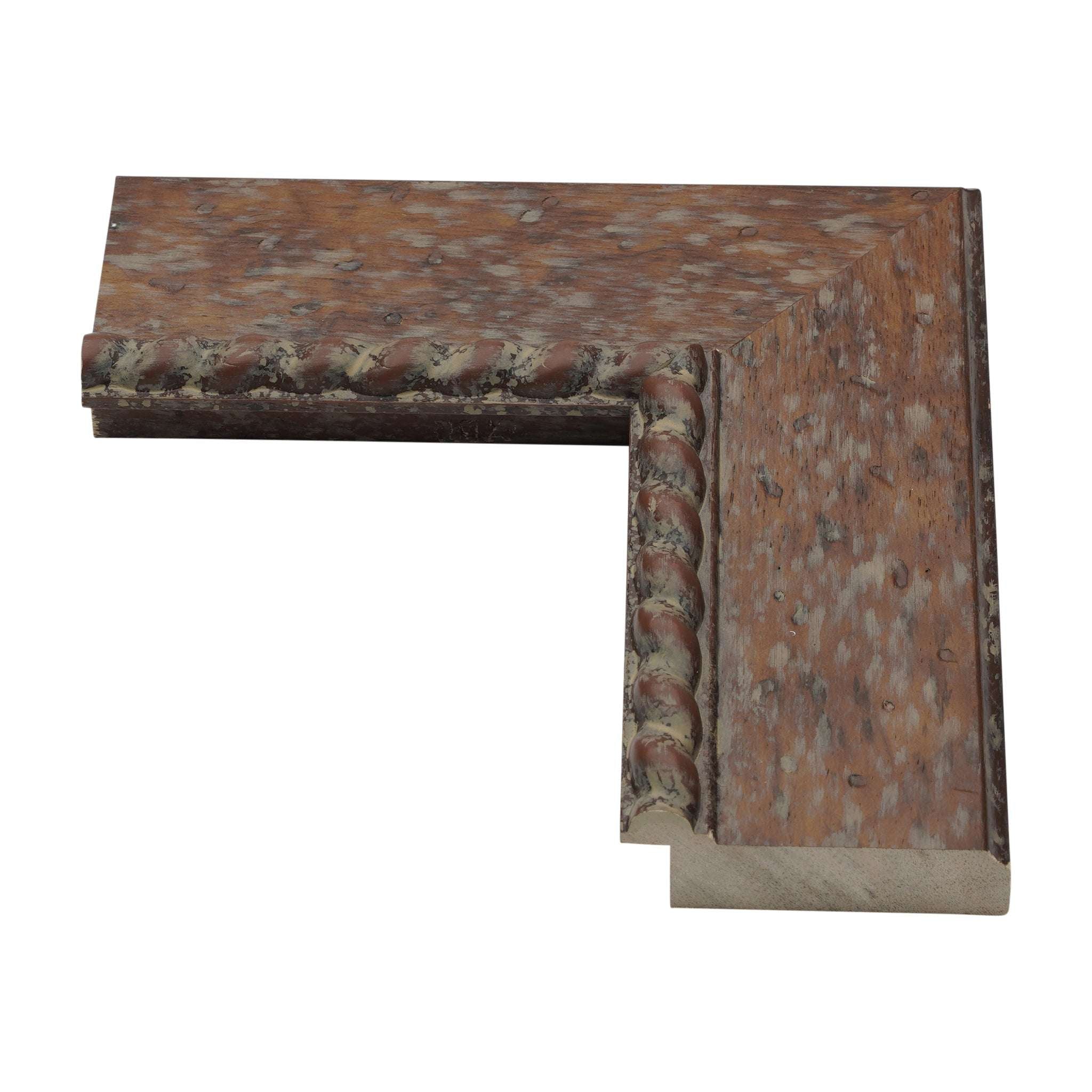 Accented with beaded trim and distressed to give it rustic texture, this dark brown custom frame with a 2 3/8” width and 5/8” rabbet depth is an ornate choice for framing portraits, prints or paintings.