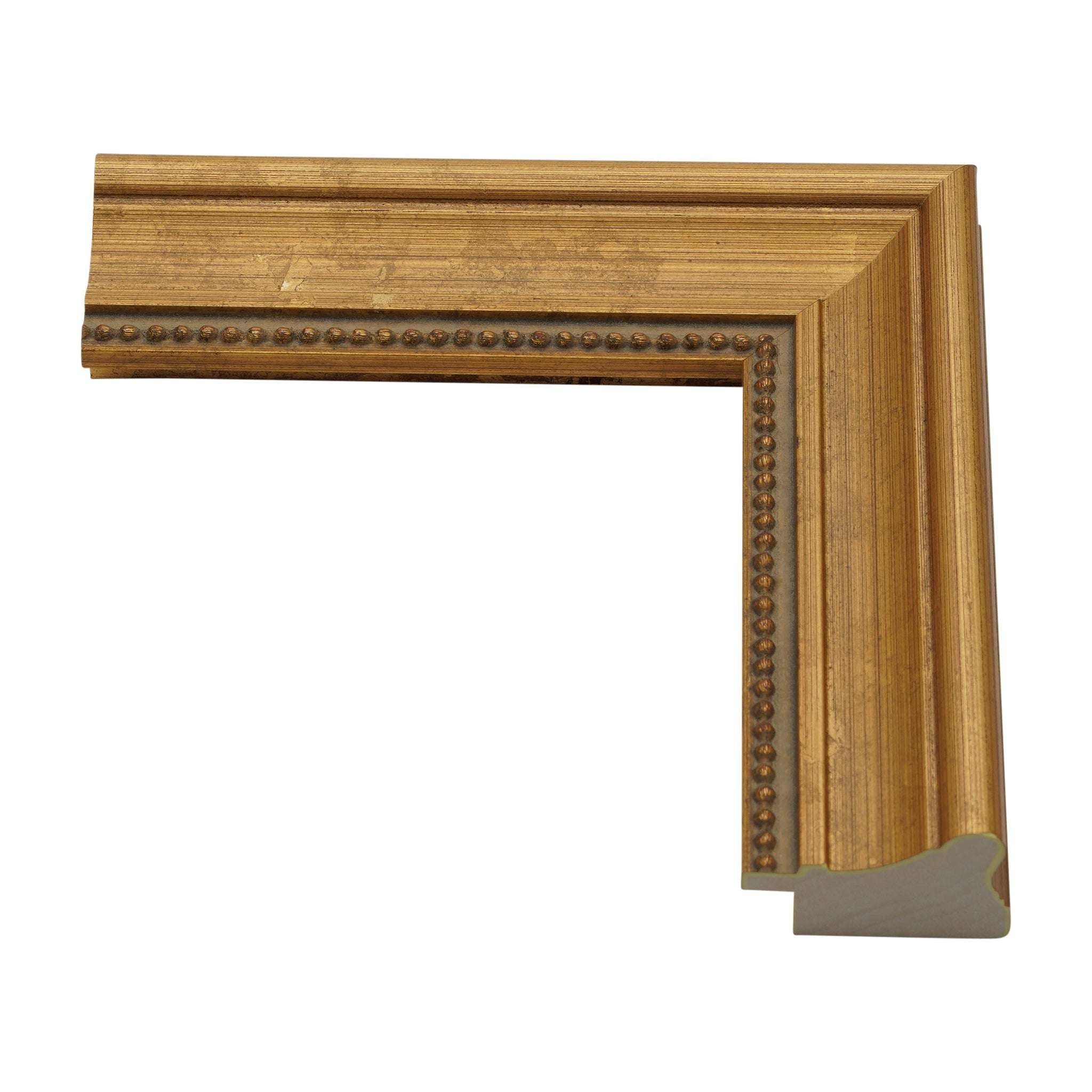 An ornate gold frame suitable for framing fancy art prints or portraits, this 1 1/2” gold frame with a 3/8” rabbet depth features a beaded lip, scooped face and flashy golden finish. This frame is available in a wider version #886.