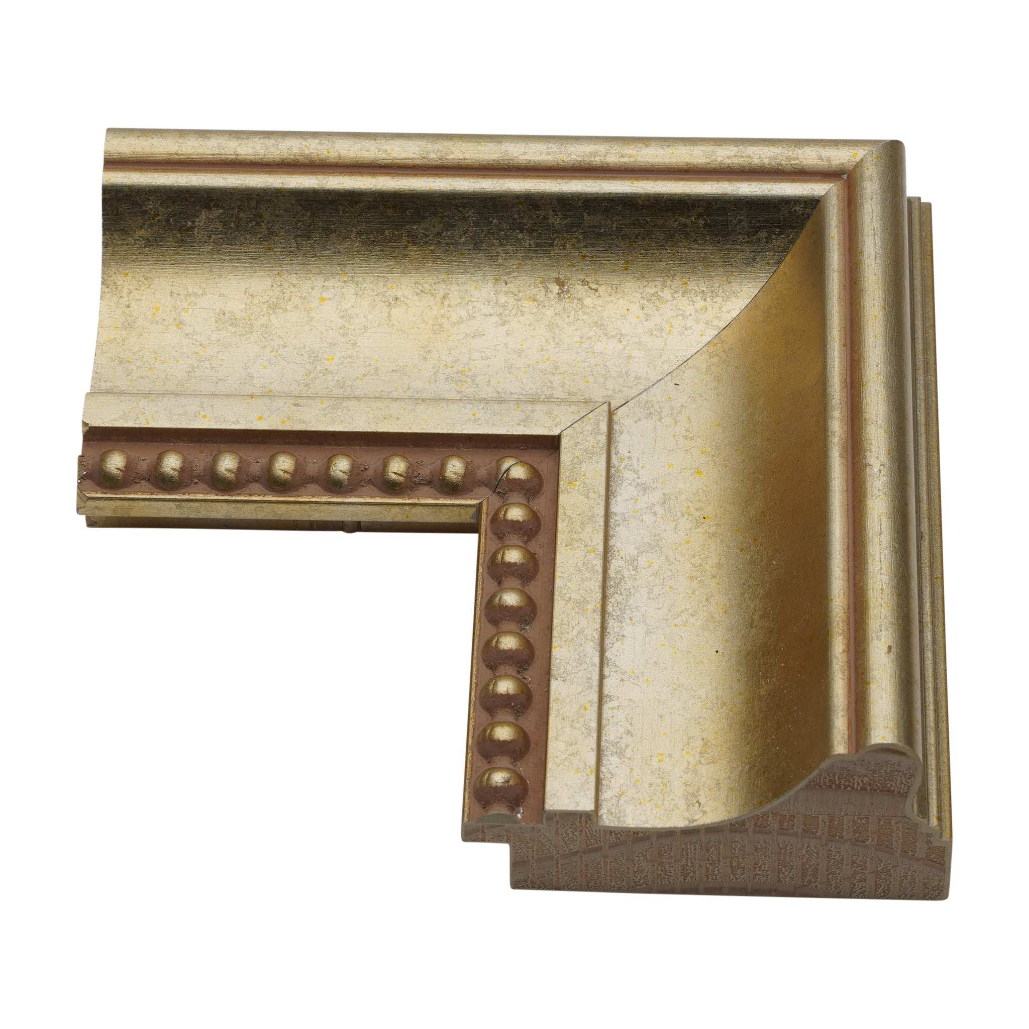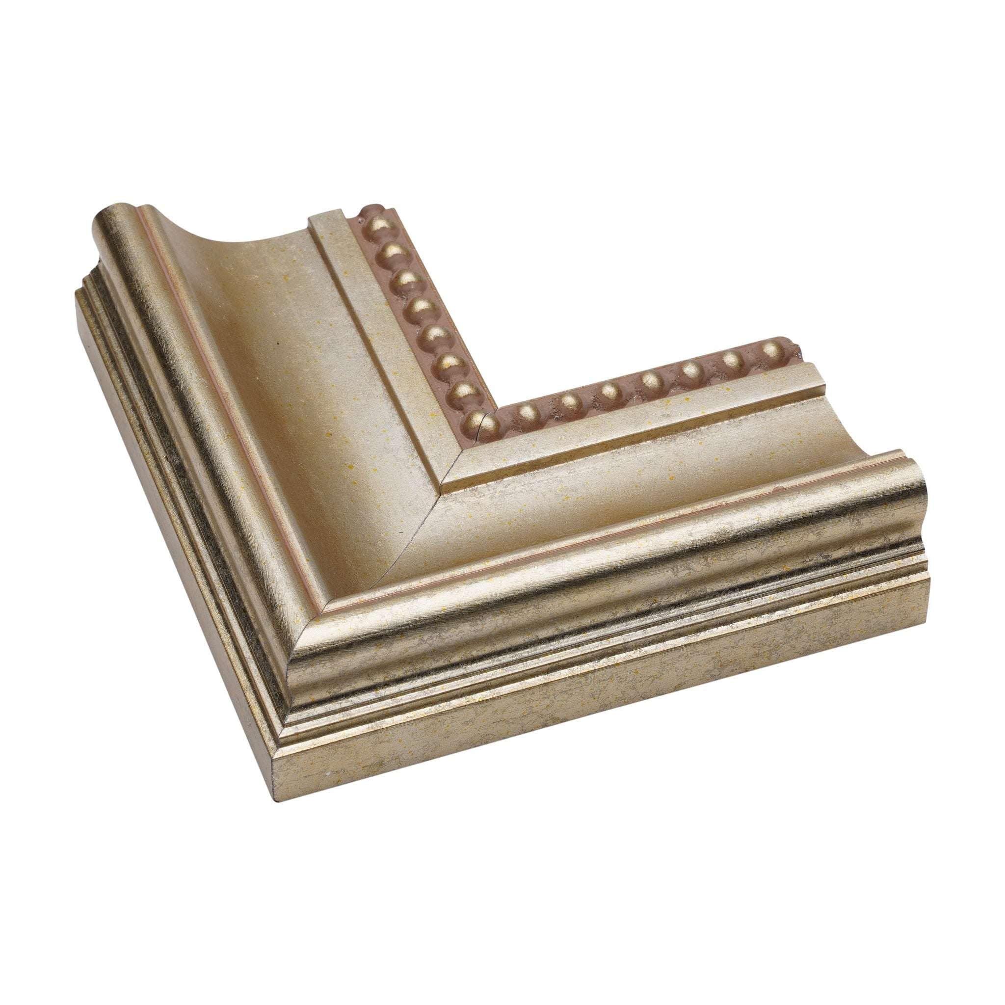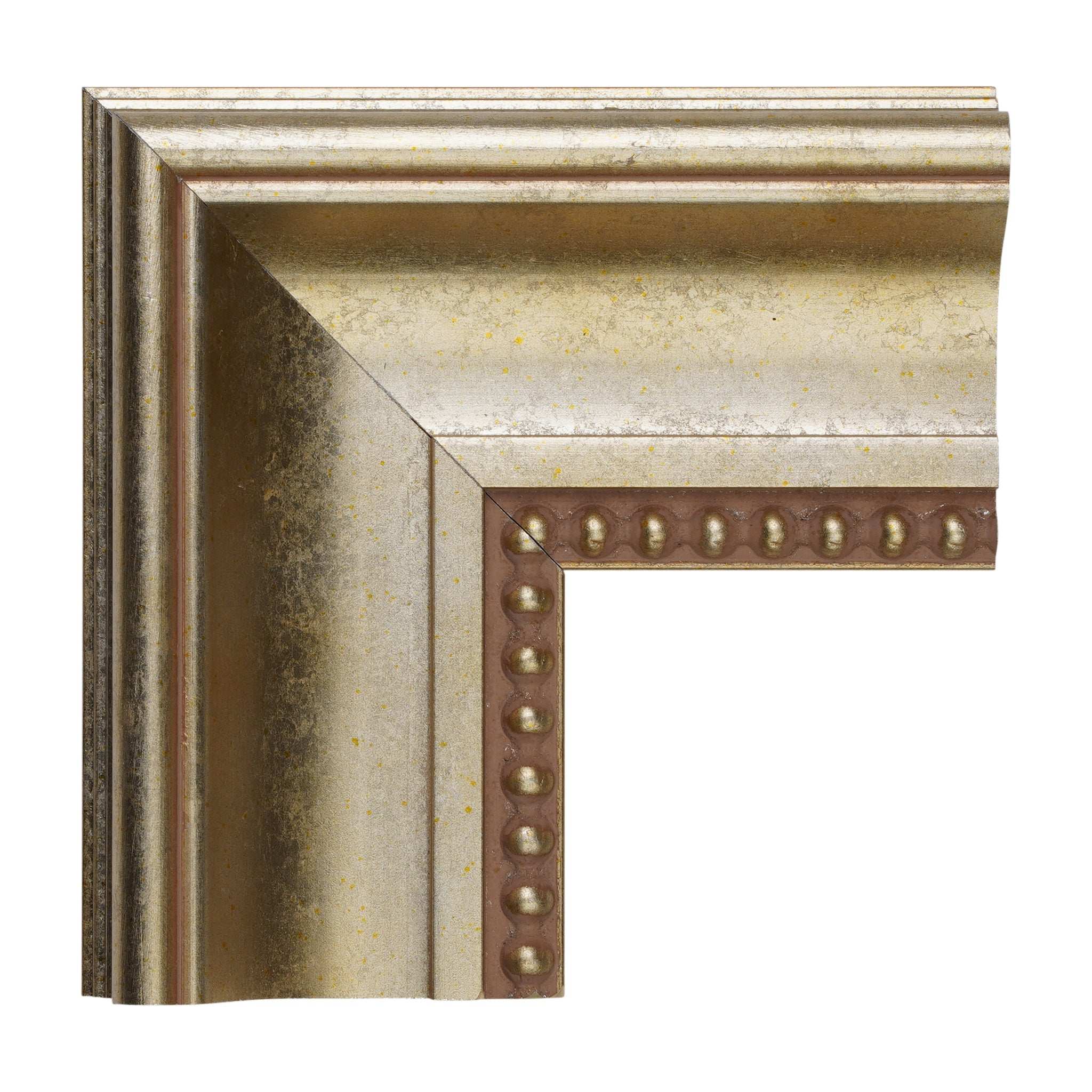 Regal and romantic, the vintage style of this ornate 3 1/8” frame with a silver champagne finish and 1/2” rabbet depth is demonstrated in its beaded lip, sloped face and corrugated edges.