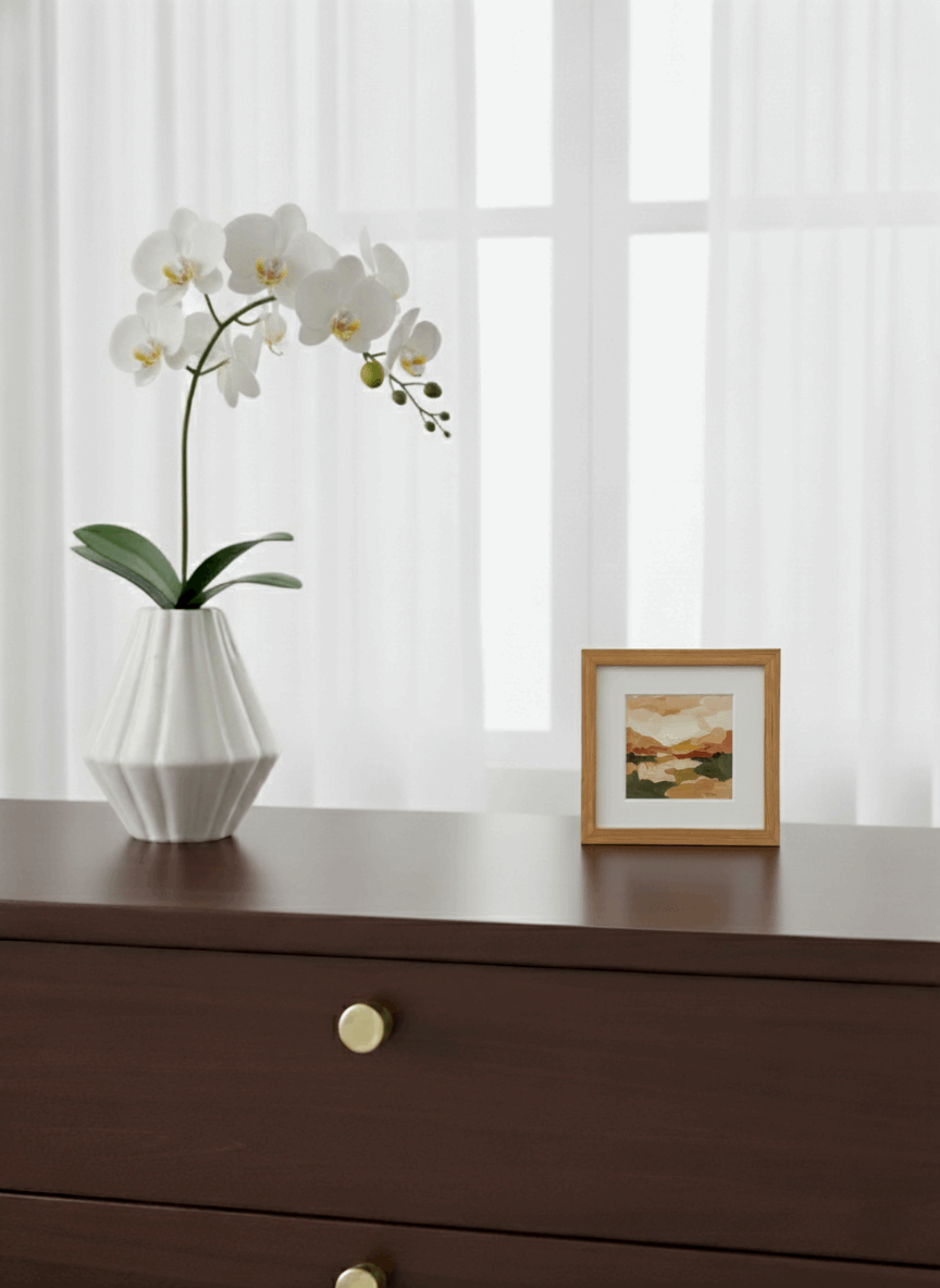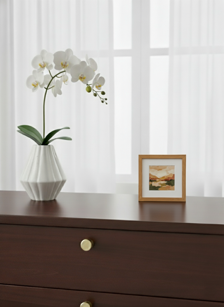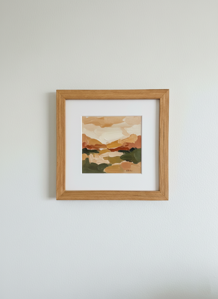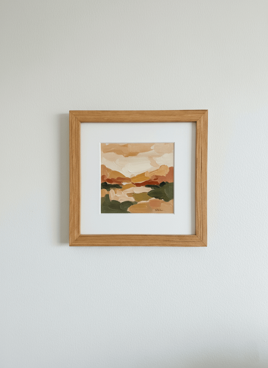 The 13/16" Amberwood Cap Frame adds a warm, honey-brown tone that enhances artwork with inviting richness. The visible grain brings texture and character, making this frame ideal for rustic interiors or cozy living spaces.