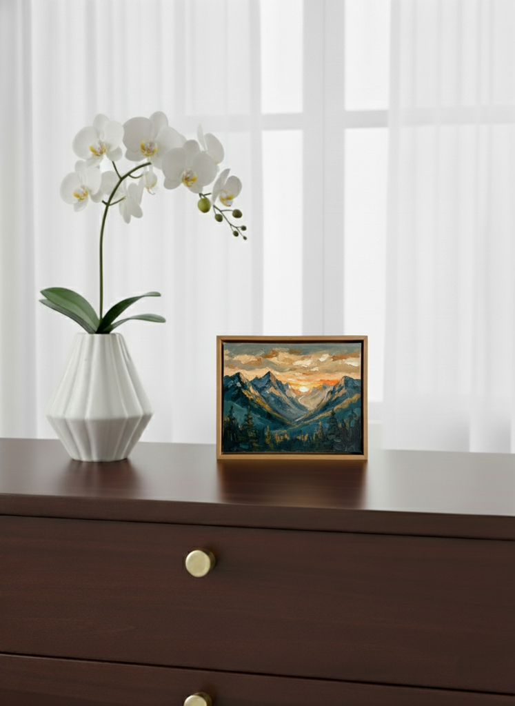 The 1 5/8" Depth Amberwood Floater Frame combines natural richness with a gallery presentation. Its warm honey-brown finish enhances rustic or classic artwork, while the floater profile allows canvases to stand out with dimension.