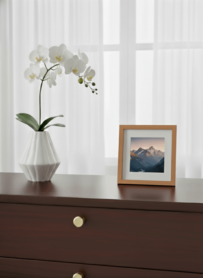 The 13/16" Auburn Copper Cap Frame offers a natural wood finish in a warm reddish-brown tone. Its earthy color highlights the grain of the wood, adding depth and character without overpowering your artwork. Auburn Copper pairs beautifully with rustic, modern, and traditional spaces.