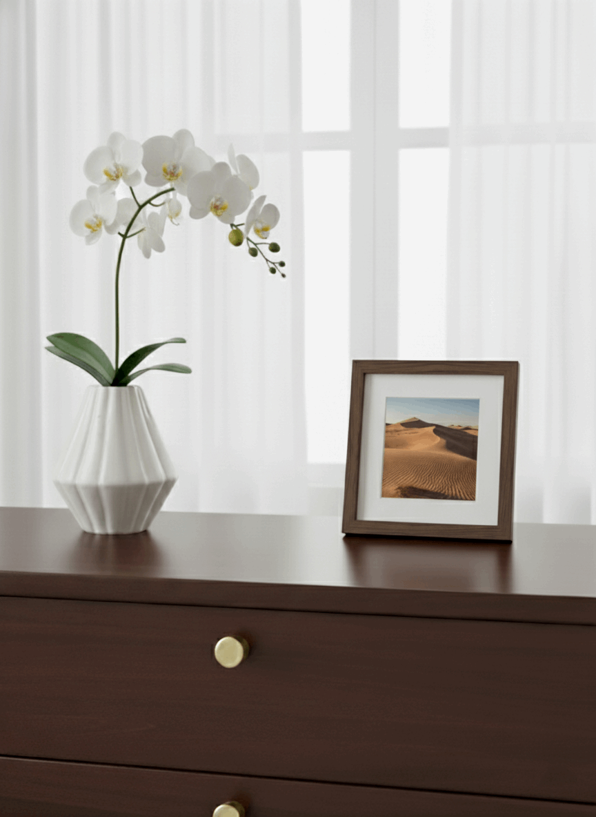 The 13/16" Burnished Mahogany Cap Frame exudes elegance with its rich red-brown finish and subtle polished effect. The visible woodgrain pairs beautifully with traditional interiors, portraits, and artwork that calls for warmth and heritage style.