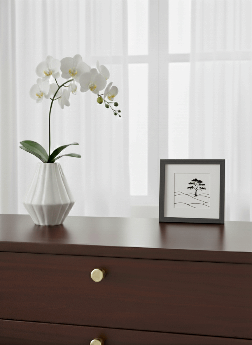 The 13/16" Midnight Stain Cap Frame delivers bold style with its deep black finish and natural woodgrain undertone. This versatile frame offers striking contrast for vibrant artwork or creates a sleek, modern edge for monochrome pieces.
